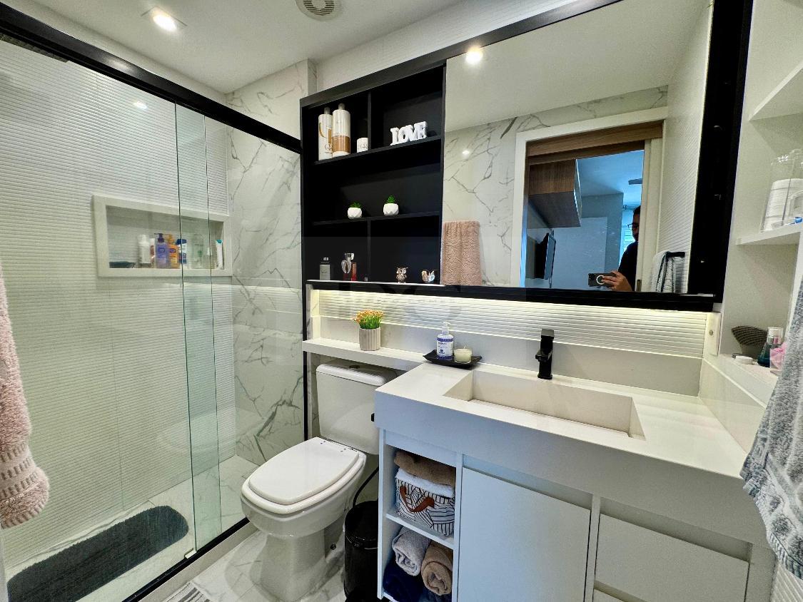 Dois quartos, sendo uma suíte com closet, sacada privativa e armários planejados